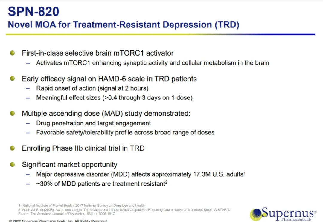 Supernus股价大跌15%!mTORC1抗抑郁药物中期试验失败